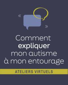 Présenté par : Autisme Montérégie OÙ : En ligne par Zoom QUAND : À partir du 20 avril PRIX : 20 à 35$ – Français Une série de 3 ateliers pour réfléchir et s’outiller! Les personnes qui ont participé témoignent : ‘’ J’ai pu trouver une façon plus simple et…