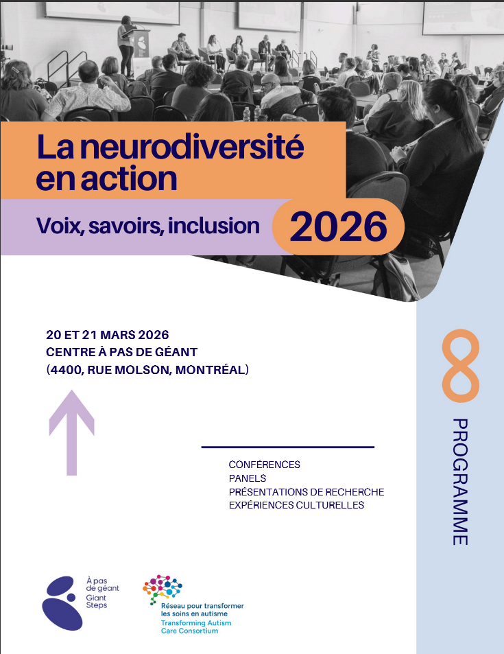 Présenté par : À pas de géants OÙ : Centre À pas de géant (4400, rue Molson, Montréal) QUAND : 20 & 21 mars PRIX : 75$ par jour – Bilingue Colloque – La neurodiversité en action : voix, savoirs, inclusion Présenté par À pas de géant en partenariat avec…